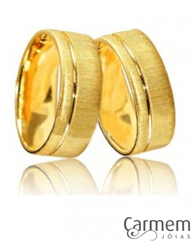 ALIANÇAS DE OURO 18K ACABAMENTO ACETINADO E FRISO POLIDO COM 14 GRAMAS O PAR AeM 116