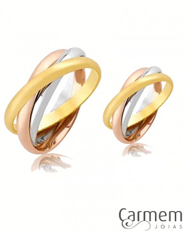 ALIANÇAS DE OURO 18K ACABAMENTO POLIDO ou escovado COM 12 GRAMAS O PAR Tricolor Reta
